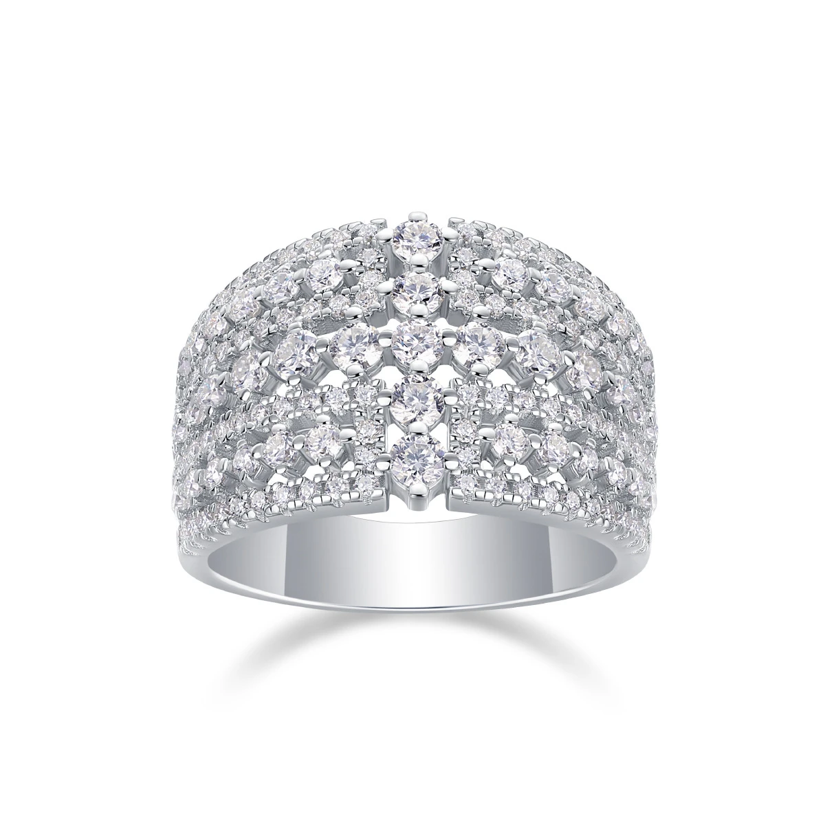 Expresa amor eterno con este anillo de moissanita central y gemas laterales en plata S925. Un diseño elegante y moderno para mujer.