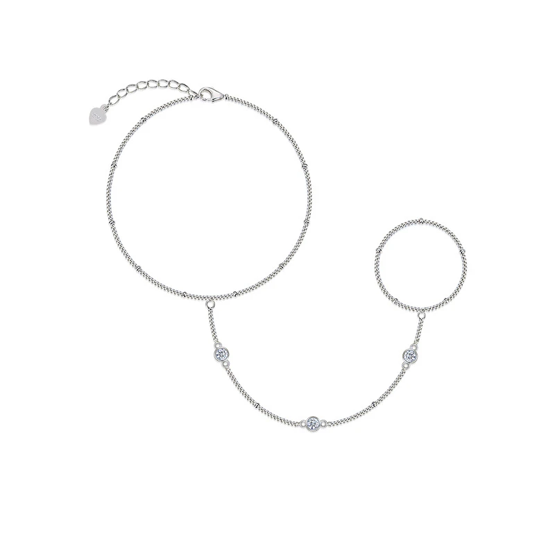 Destello unido – Pulsera con anillo de moissanita en plata S925 para mujer